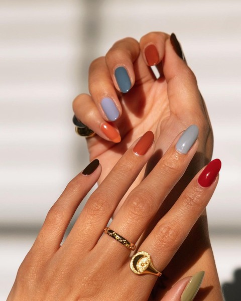 Якщо ви так і не вирішили, який осінній колір вам подобається найбільше, не переживайте. Просто нафарбуйте нігті усіма улюбленими відтінками відразу! Журавлинно-червоний, гарбузово-оранжевий, свинцево-сірий і всі інші тони до ваших послуг.