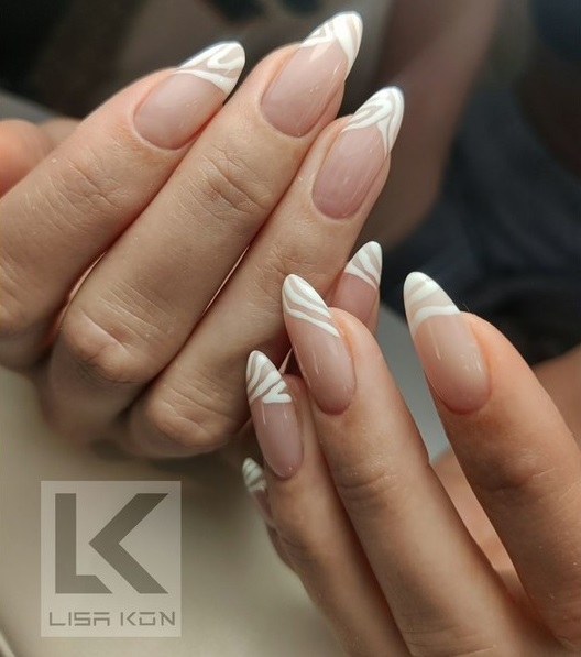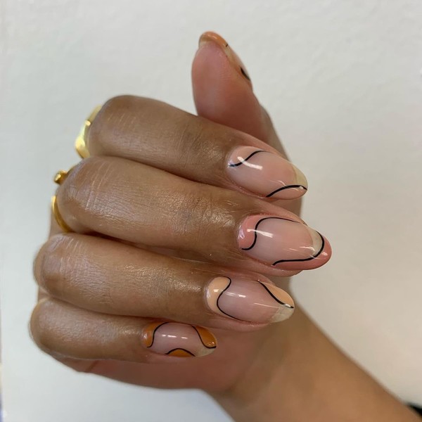 Якщо складними кольорами вже нікого не здивувати, то незвичайні форми в манікюрі ще в тренді. Круто виглядають нейл-дизайни в нюдових відтінках на голому нігті. А щоб вони були помітнішими, можна окреслити їх чорним, наприклад.