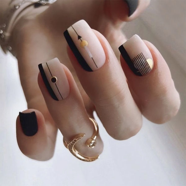 Такий прийом сподобається тим, хто любить мінімалізм, тонкі дизайни у корейському стилі та графіку. Акцент може бути виконаний лініями, точками або їх поєднанням – він направлений на центральну вісь нігтя і відволікає увагу від об’ємних боків. Основа може бути будь-яка, на ваш смак, головне, щоб вона була досить світлою.
