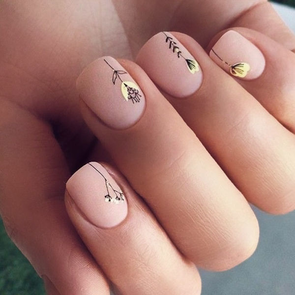Ще один корейський дизайн модницям у скарбничку. Якщо розташувати вертикальні квіти по краю видимої і невидимої зони пластини (тобто по тій лінії, за якою ніготь різко йде вбік і вниз), ви акцентуєте вертикаль і сховаєте небажаний куточок. Якщо так прикрашати всі нігті, око приймає «ритм» дизайну, і від уваги глядача вислизають інші огріхи форми.
