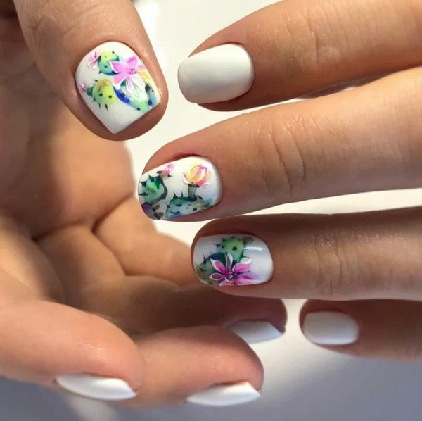 До речі, квіти на нігтях цього літа модно малювати на прозорій основі.