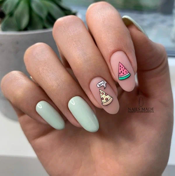 Солодкі малюнки на нігтях – літній манікюр із фруктами та смаколиками