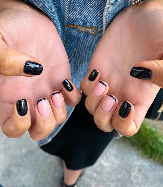 Багато жінок бояться робити френч в чорному відтінку, адже здалеку він може нагадати некрасивий бруд під нігтями. Якщо це зупиняло вас, то час переглянути свої погляди. Поєднуйте чорний френч з однотонним покриттям, і нікому навіть в голову не прийдуть неприємні асоціації.