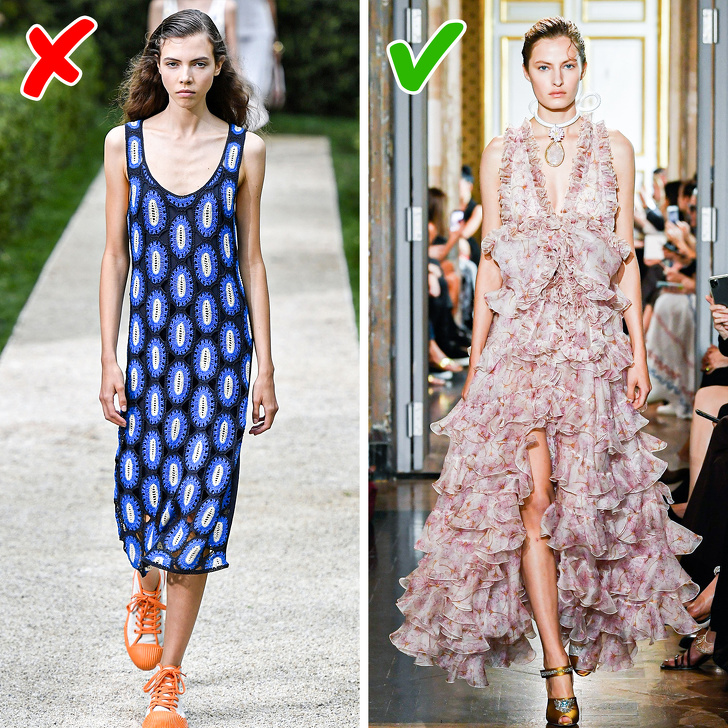 У 2019 в’язані речі були на піку популярності, але цієї весни їх місце займуть романтичні повітряні сукні з оборками та рюшами. Erdem, Roksanda і Valentino закликають не соромитися і відчувати себе принцесою кожен день, вбираючись в атлас, шовк і парчу. Якщо вам подобаються яскраві кольори, то цей тренд точно для вас: величезні рюші червоного і відтінку фуксії – те, що «прописують» всім модницям в цьому сезоні Vaquera і Christopher Kane.