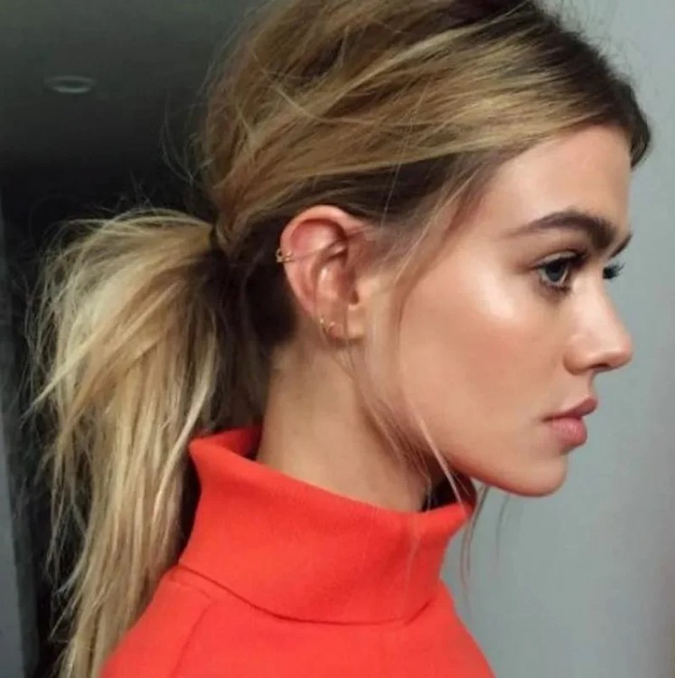 Середній хвіст можна злегка начесати, волосся на маківці збити пальцями і вийде стильне укладання, гідне червоної килимової доріжки. Використовуйте невидимий лак для волосся і текстуруючу пудру для створення такої зачіски.