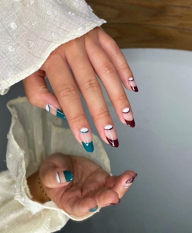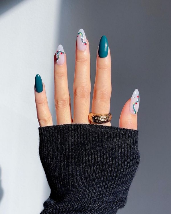 Френч у всіх проявах – тренд на віки. Але на Новий рік краще спробувати щось нове, наприклад, зворотний френч у зеленому хвойному кольорі.