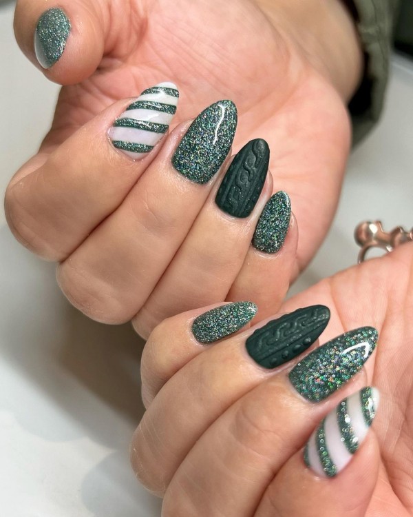 Тільки на нігтях. Випуклий дизайн, що нагадує вовняну в’язку, стане чудовим компаньйоном для зустрічі Нового року за містом.