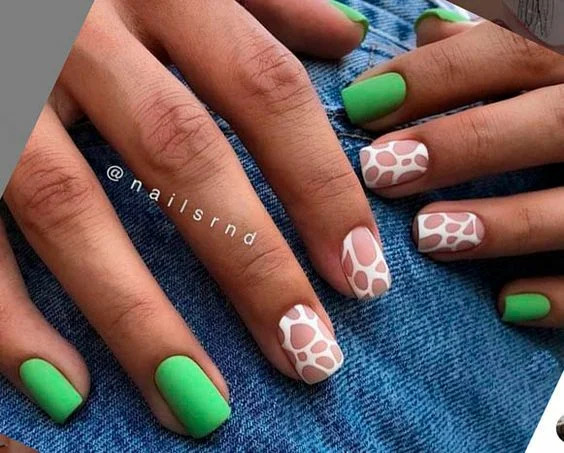 Більш помітні відтінки зеленої палітри створюють грайливий настрій і привертають увагу своєю зухвалістю. Такий манікюр не підійде для повсякденного носіння, але буде доречним для особливо слушної нагоди.