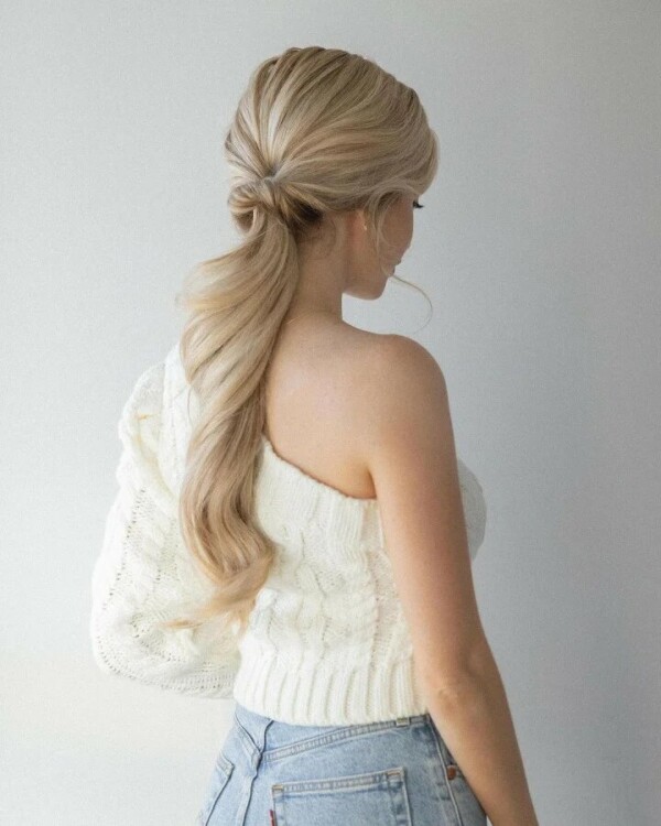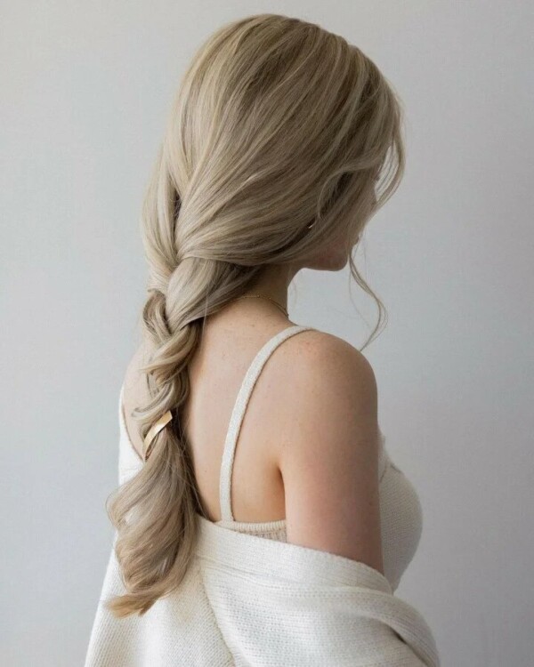 Низький хвіст, закручений біля основи в черепашку + легкі локони по всій довжині, зроблять довге волосся більш привабливим.