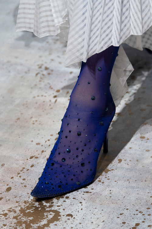Продовжуємо підбивати підсумки Тижня високої моди. Як і годиться, велика частина пар взуття на кутюрних показах – це туфельки для сучасних принцес. У випадку з Givenchy та Alexandre Vauthier – чоботи. Дизайнери щедро прикрасили їх перлинами, глітером, стразами і паєтками. Dior запропонували свою версію грецьких сандалій, Zuhair Murad – босоніжки з максимально довгими зав’язками, а Valentino з’єднали атлас і прозорий пластик. Виняток склав лише показ Chanel – мінімалістичні лофери на невеликих підборах моделі носили під білі шкарпетки.