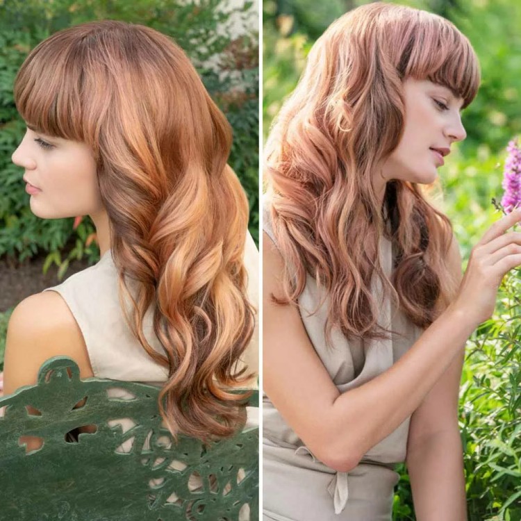 На блонді “рожеве золото” виглядає більш інтенсивно, з переходом в “полуничний” відтінок. Цей колір на будь-якій довжині волосся виглядає чудово.