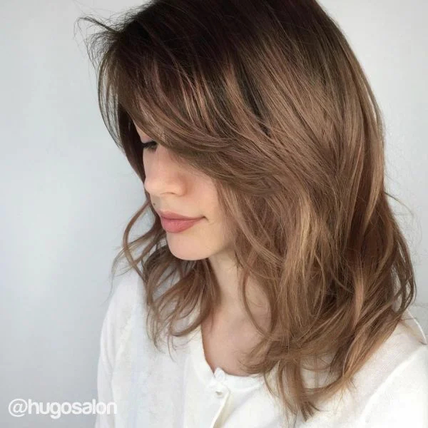 Якщо ви віддаєте перевагу довжині трішки нижче плечей, то додайте шарів за допомогою бічного подовженого чубчика. Образ вийде легким і повітряним.