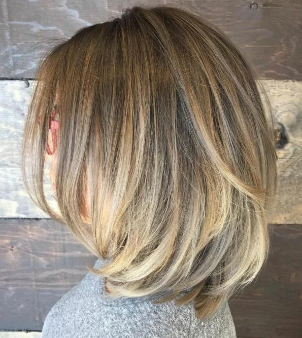 Чудовий округлий боб з тонкими легкими шарами, вкладеними рівними пасмами. Текстура такої стрижки добре підкреслюється меліруванням або акцентним фарбуванням з висвітленням окремих пасом.