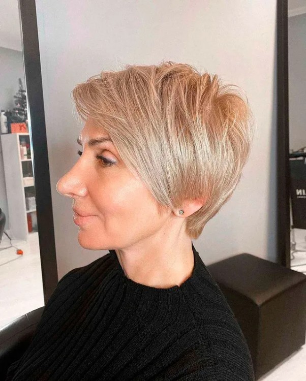 Подовжена стрижка піксі з чубчиком на бік