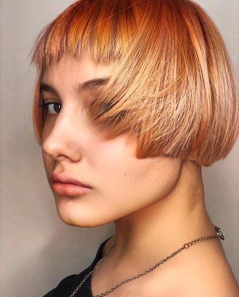 Любителів у стрижки боб багато, тому пропонуємо ще один, менш класичний варіант. Укорочене каре ідеально поєднуватиметься з коротким чубчиком. Особливу увагу на цю стрижку варто звернути жінкам із овальною формою обличчя – їм вона точно підійде.