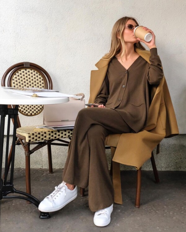 Спорт-шик знаходиться на піку популярності в модних колах. Жінки поєднують найелегантніші і витончені предмети гардеробу зі зручним і стильним спортивним одягом. Безпрограшний варіант модного образу в стилі спорт-шик – класичне пальто і спортивний костюм з кросівками. Багато знаменитостей дуже часто вибирають такий стильний тандем одягу.