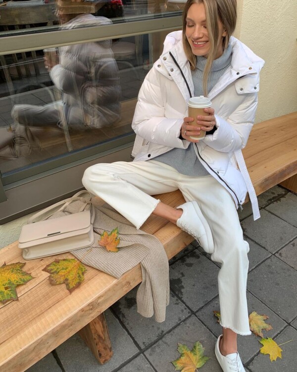 Не варто забувати і про пуховики, вони також актуальні цієї осені. Якщо ви віддаєте перевагу лаконічним образам, вибирайте модний пуховик в чорному або білому кольорі. Під куртку можна підібрати не тільки зручні джинси та кросівки, але й класичні брюки з елегантними чобітками без каблука.