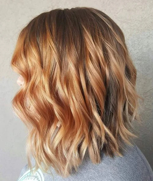 Цей полуничний блонд виглядає пустотливо і цікаво. Нехай такий балаяж не особливо довговічний але зате ви будете відчувати себе чудово з таким виразним кольором волосся.