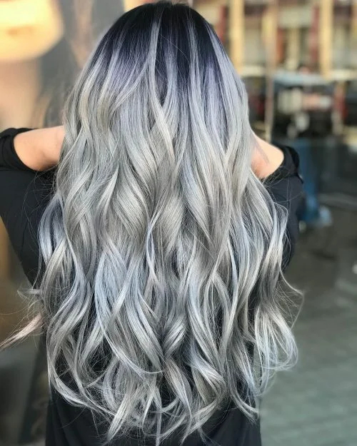 Сріблясто-попелястий блонд на темному волоссі. Для тих брюнеток, хто хоче виглядати яскраво і помітно!