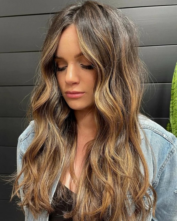 М’який балаяж з карамельно-медовим відтінком на коричневому волоссі. Мабуть, наш улюблений спосіб фарбування і наші улюблені відтінки. Виглядає дуже гарно, правда?