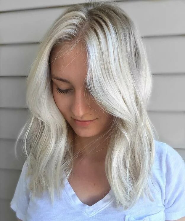 Скандинавський блонд стане м’якшим, завдяки поєднанню з натуральними русявими корінцями. Зверніть увагу, що фарбування біля коріння є частковим, з легким серпанком.