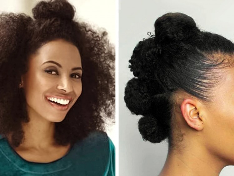 Різноманітні пучки – це весело. А ще – це одна з найлегших і простих зачісок на кожен день. На об’ємному волоссі кучерявої текстури така зачіска виглядає грайливо і мило.