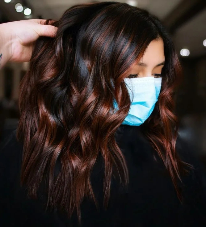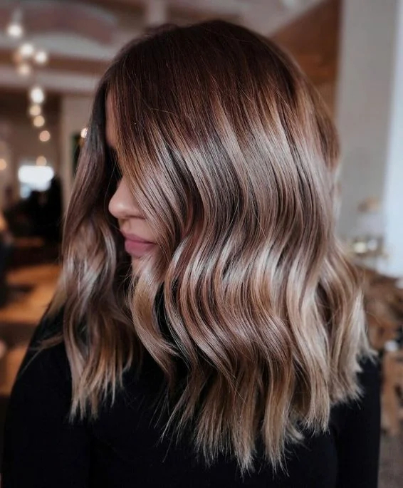 Блискучі відблиски кольору рожевого дерева м’яко освіжають темний колір волосся і виглядають цікаво. Це не банальний балаяж, який додасть вам грайливості і запалу.