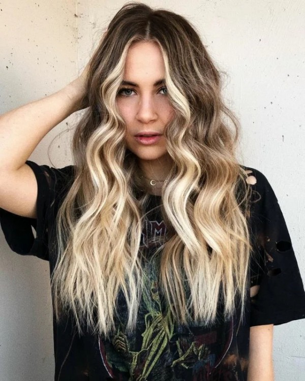 Ніжний перлинно-русявий колір додасть вам романтичності і м’якості. Таке фарбування буде виглядати ефектно саме в техніці балаяж. Легкі хвилі додадуть текстури і краще покажуть колір.