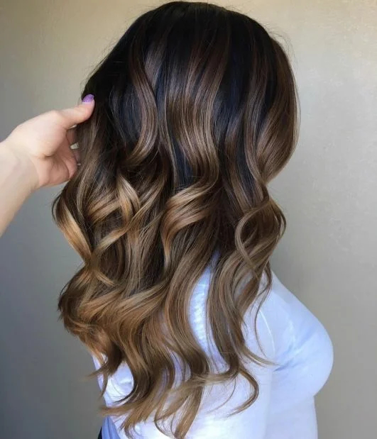 Шоколадно-карамельний балаяж займає лідируючі позиції серед варіантів фарбування для брюнеток. Ці м’які карамельні пасма створюють дивовижно красиві переливи відтінків, від яких неможливо відвести погляд.