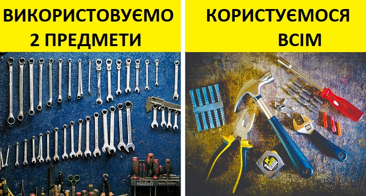 Професійні інструменти. Потужний гайковий ключ, викрутки з магнітним напиленням, надзвичайно точні штангенциркулі… Без сумніву, все це спрощує роботу майстра, але в звичайному житті, коли ви дістаєте інструменти раз на рік, щоб повісити поличку, такі витрати здаються перебільшеними. Знову ж таки – все обладнання можна взяти в оренду.