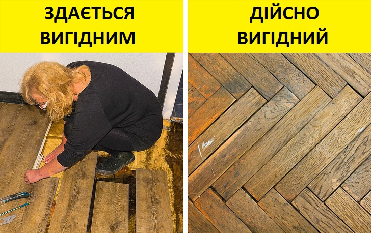 Ламінат. Це підлогове покриття можна зустріти практично в кожній другій квартирі. Вважається, що використовувати ламінат досить вигідно, так як він дешевший за паркет або, скажімо, вінілову плитку. Але на цьому його плюси закінчуються. І починаються мінуси. Ламінат боїться вологи, дуже швидко зношується, легко дряпається, а здуття на краях панелей зіпсували не одну сотню колготок. Полагодити зіпсовані ділянки неможливо – тільки замінити. У підсумку все, що було зекономлено на укладанні, буде витрачено на ремонт. Набагато вигідніше, наприклад, покласти вінілову плитку, яка не боїться води і за властивостями близька до паркету, і не згадувати про неї більше ніколи.