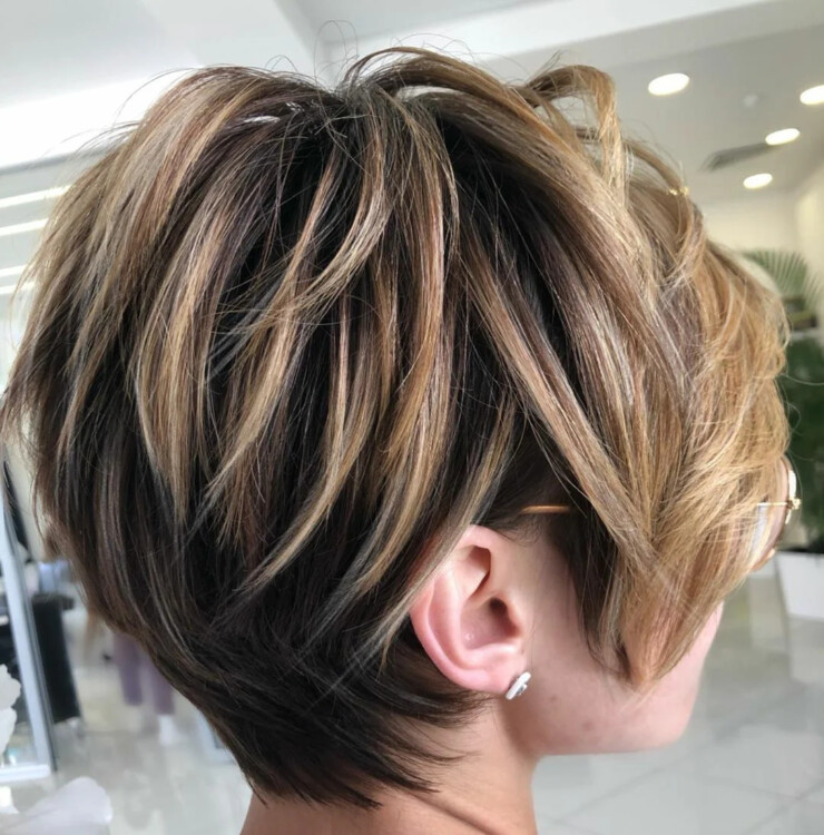У вас тонке волосся? Чи розглядали ви стрижку боб для тонкого волосся? Короткий багатошаровий боб – відмінний спосіб додати об’єму тонкому волоссю. Додайте трохи світлих відтінків блонду, які допоможуть вам виглядати на кілька років молодше.