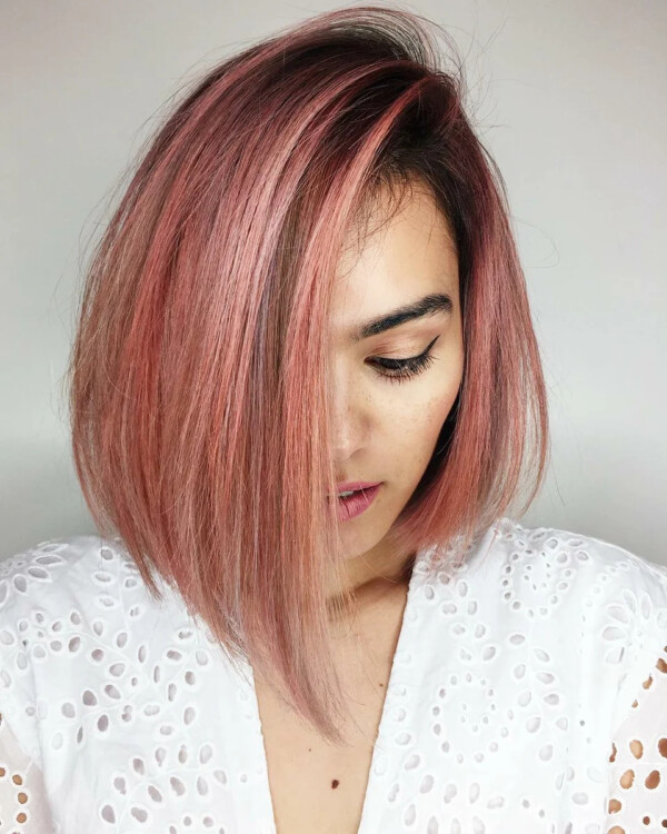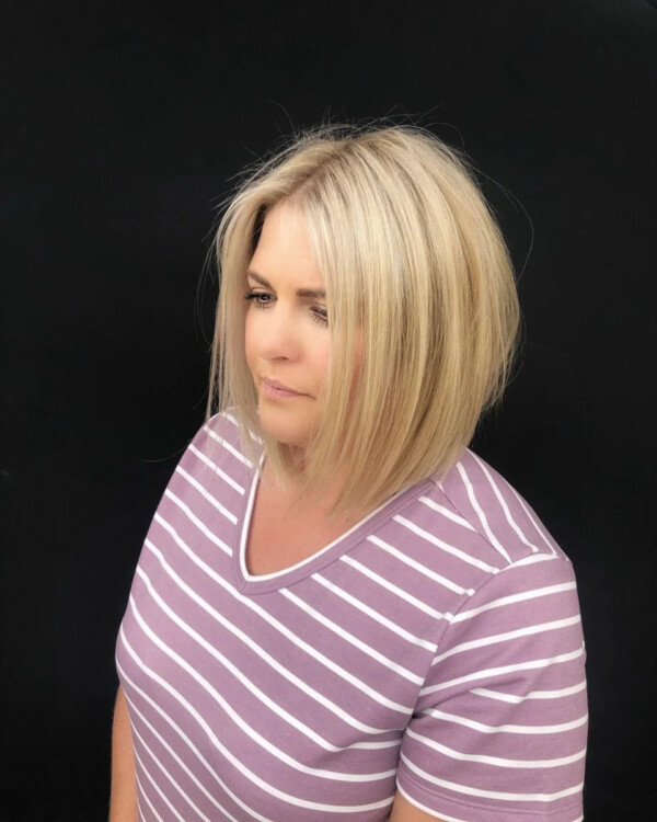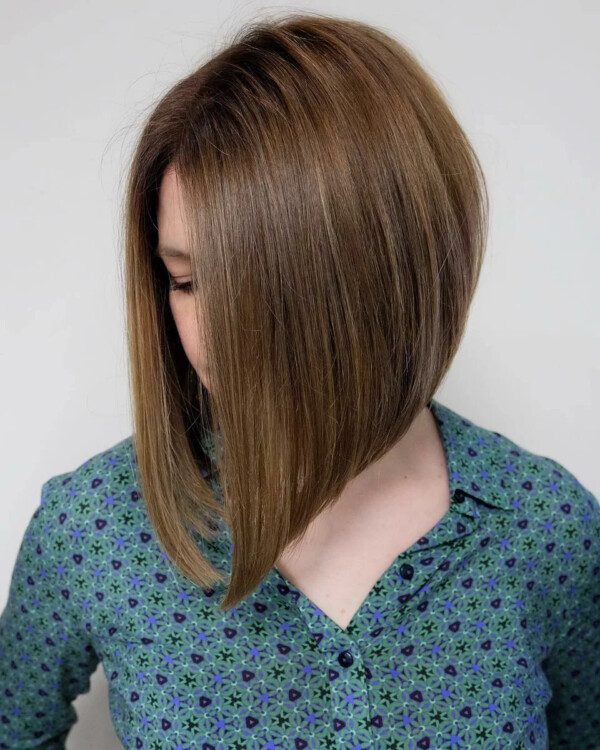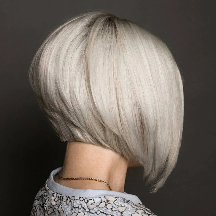 “Перевернутий” боб добре поєднується з косим подовженим чубчиком. Разом з ним зачіска буде візуально омолоджувати.