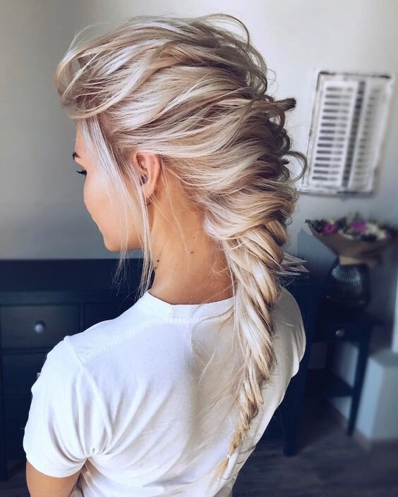 Об’ємний і розслаблений “риб’ячий хвіст” чудово поєднується з низьким хвостом. Ця зачіска може бути як повсякденною, так і базовою для створення вечірніх та святкових образів.