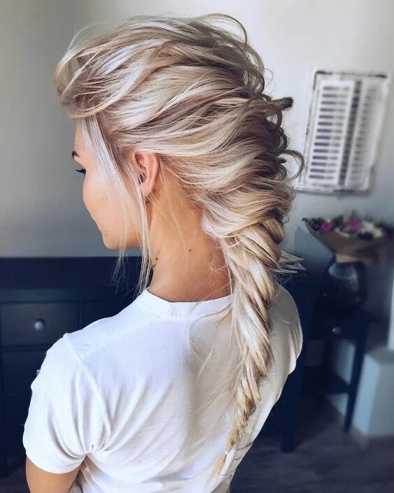 Об’ємний і розслаблений “риб’ячий хвіст” чудово поєднується з низьким хвостом. Ця зачіска може бути як повсякденною, так і базовою для створення вечірніх і святкових образів.