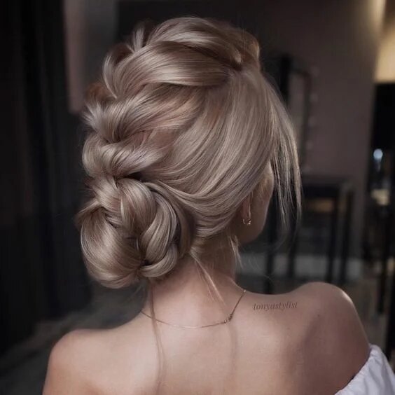 Варіант вечірньої зачіски, яка виглядає трохи складніше попередньої. Тут поєднується кілька видів джгутів і низький пухнастий хвіст. Ідеальний образ для сучасної нареченої!