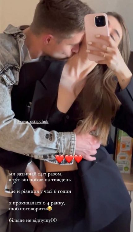 Катерина Полтавська дуже щаслива, що шоумен повернувся додому. З цієї нагоди вона поділилась новою публікацією, показавши ніжні поцілунки з чоловіком. В Instagram-stories дружина Володимира Остапчука зізналась, що цілий тиждень не бачилась з шоуменом. Подружжя вперше розлучилось на такий великий проміжок часу.