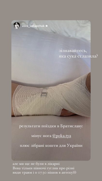 “З ногою у мене проблеми навіть не через самокат. Причина забиття ноги: впасти з самоката – ні. Стати повз бордюр – так”, – прокоментувала ситуацію Катерина Полтавська. А ще дівчина показала, як Володимир Остапчук робить їй перев’язку. Публікацію дружини телеведучого відразу прокоментували юзери. Вони побажали Катерині Полтавській швидкого одужання. А ще підписники порекомендували дівчині бути обережнішою.