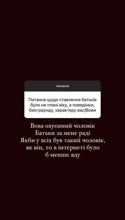Батьки Катерини Полтавської дуже за неї раді. Підписники теж засипали журналістку приємними словами й компліментами. Вони пораділи за подружжя, побажавши щасливого сімейного життя. Також юзери додали, що Володимир Остапчук та Катерина Полтавська є дуже красивою парою.