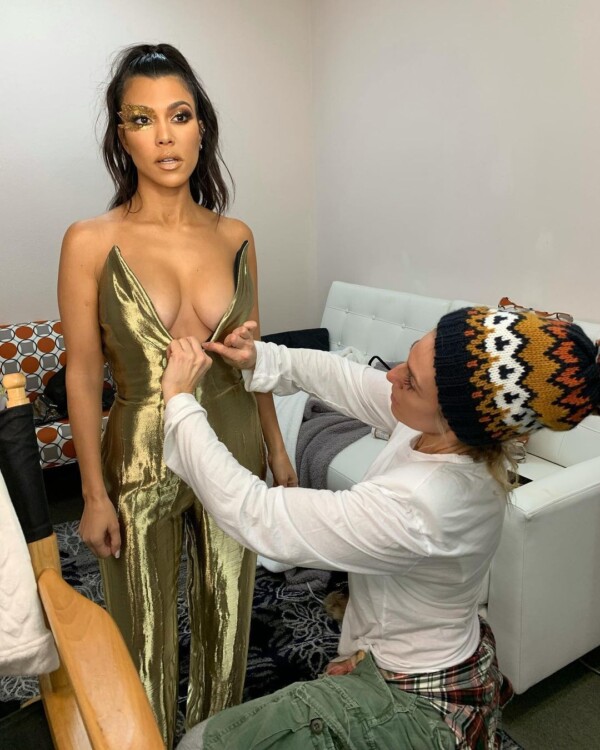 На своїй сторінці в Instagram 41-річна знаменитість показала знімок, зроблений в гримерці. На фото Кортні позувала в сексуальному комбінезоні з блискучої золотистої тканини, під який не вдягла бюстгалтер. Неабияку увагу на фото зірка акцентує на своє пишне декольте, яке ледь прикриває вбранням.