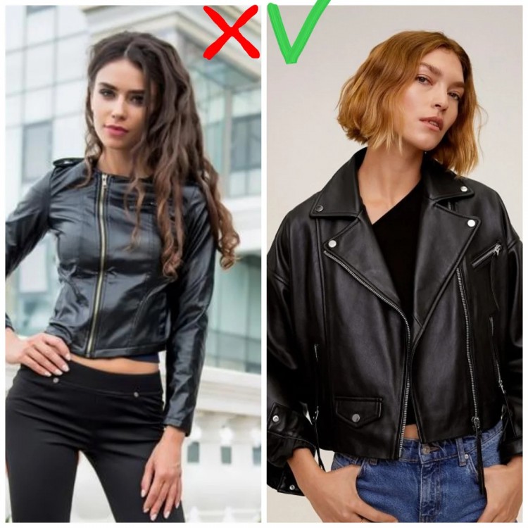 Навіть за моделлю на фото зверху видно, як по-сучасному виглядають шкірянки, що не обтягують фігуру. Як ви зрозуміли, зараз в моді косухи, що не обтягують силует.