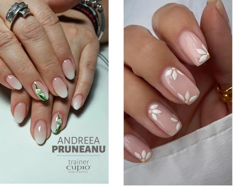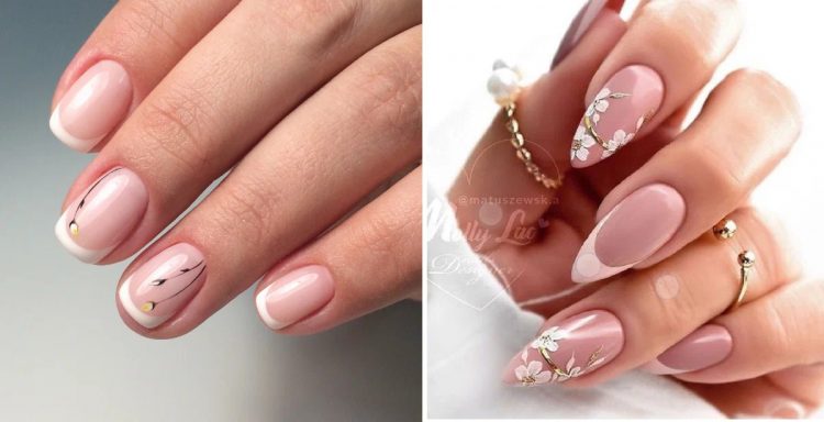 Варіанти френча, де квіти замінюють класичний білий кінчик: