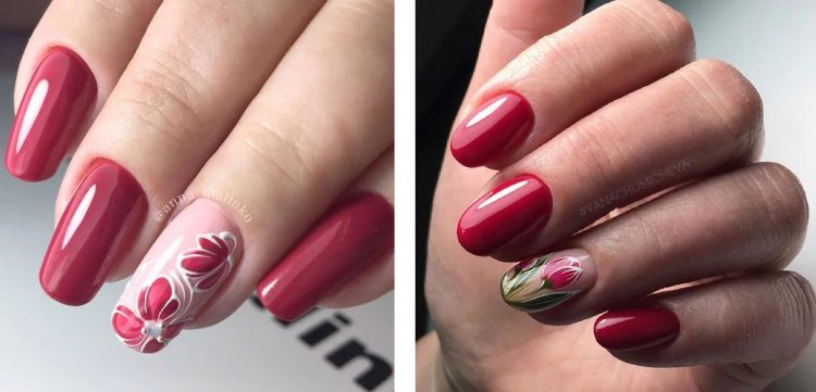 Правило вибору дизайну тут досить просте: малюнок квітки не повинен містити багато різноманітних відтінків. Краще якщо це будуть малюнки, схожі за кольором з лаком.