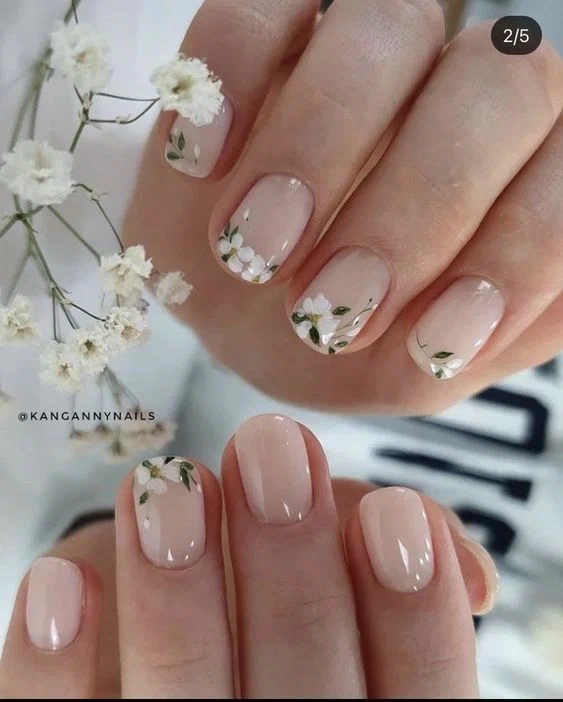Нюдові відтінки та мінімалістичний рослинний малюнок