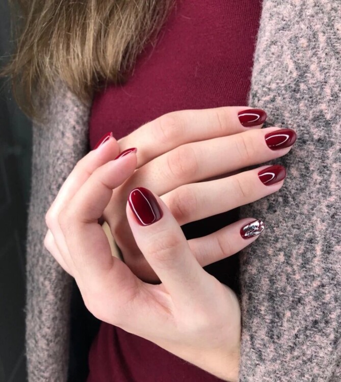 Манікюр у відтінку марсала може надати як акуратності і жіночності рукам, так і зухвалості. Все залежить від обраного декору. У 2021 році все-таки рекомендується не використовувати його в занадто великій кількості, а обмежитися, наприклад, декількома стразами.