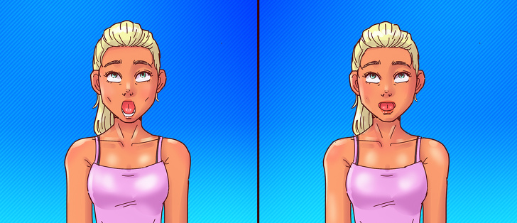 Як робити: Випряміть спину, розслабте плечі і відкиньте голову назад, щоб відчути натяг м’язів в області верхньої частини шиї і підборіддя. Почергово то витягайте губи в трубочку, то висовуйте язик. У кожній позі затримуйтеся по 5 секунд. Повторіть 3 рази. Щоб вправа була ефективною, ви повинні відчувати напругу м’язів постійно.