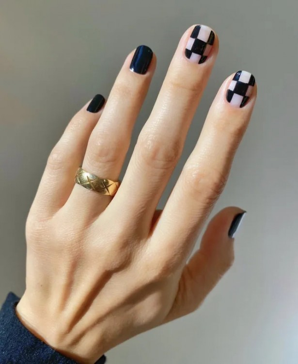 Шаховий дизайн нігтів – класика, яка не набридне. Можна зробити його на всі пальці або виділити акцентом лише кілька.