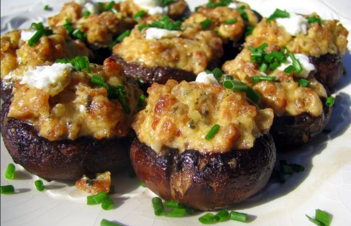 Така закуска чудово підійде до святкового столу. Готується вона дуже швидко та просто. Фаршировані печериці апетитні на вигляд та надзвичайно смачні.