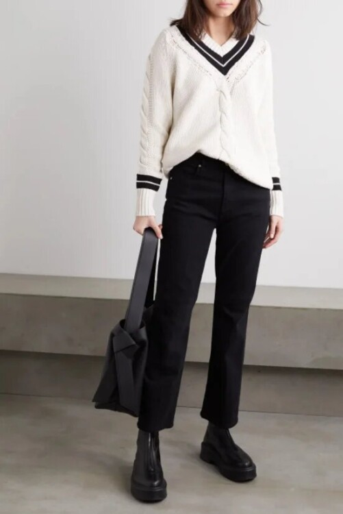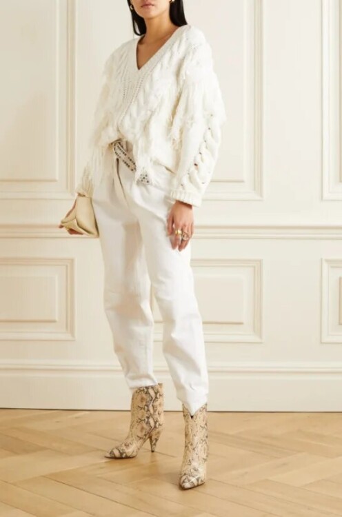 Білий якісний светр – це річ, яка неодмінно повинна оселитися в вашому базовому зимовому гардеробі. Належна якість цієї речі зробить ваш повсякденний образ дорогим і охайним, а білий колір виграшно «освіжить» вашу зовнішність і зробить зимовий аутфіт більш святковим. Мінімалістичний оверсайз, а також моделі з ажурними косами і глибоким «V» -подібним вирізом будуть актуальні взимку 2020/2021 року.