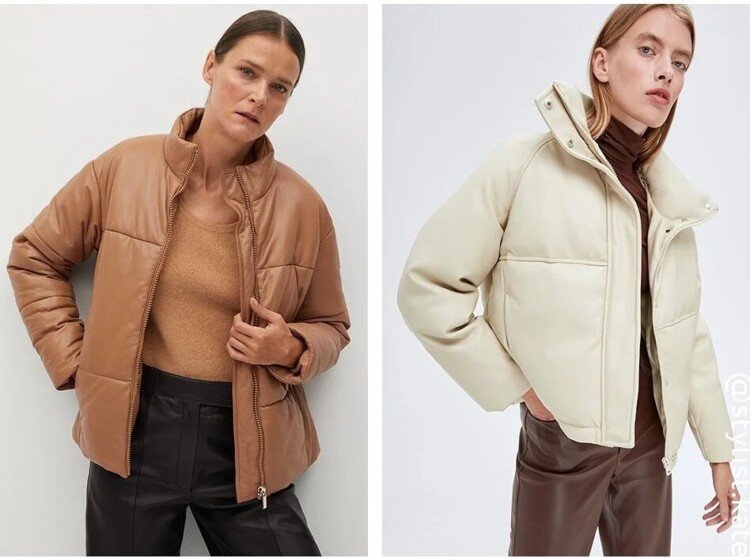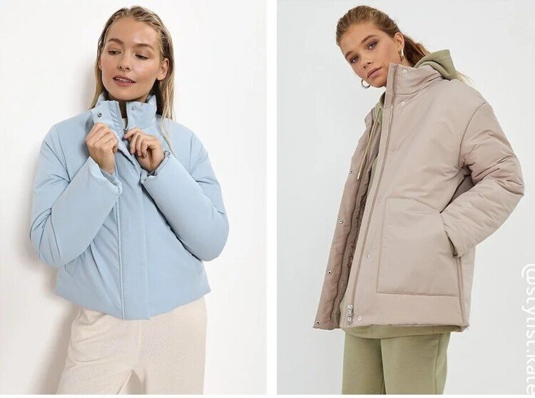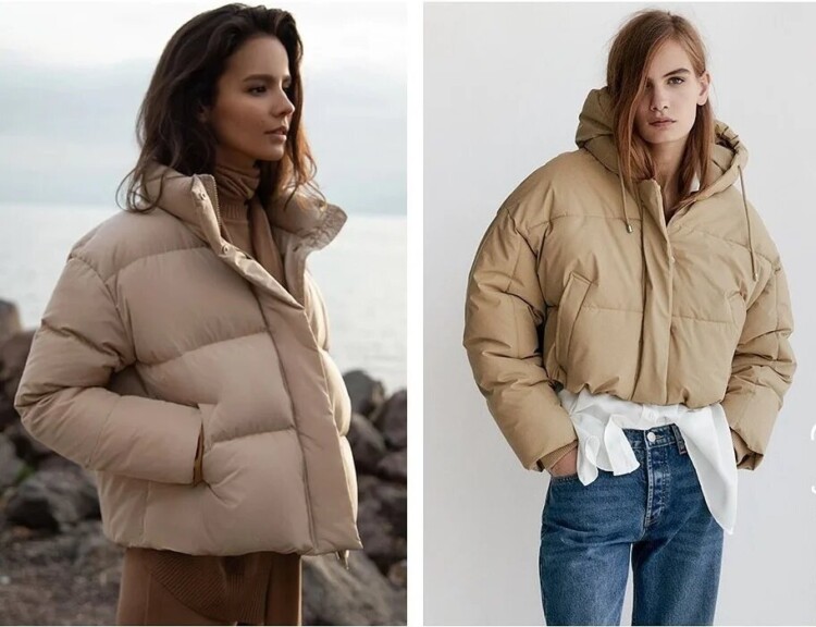Такі куртки можуть бути як гіпероб’ємними, так і більш помірного вільного крою. Вибирайте за своїми особистими відчуттями: комусь в дуже об’ємній куртці може бути некомфортно, тому що під неї знизу буде задувати вітер. Але не всі стикаються з такою проблемою, це індивідуально. Справа на фото – трендова коротка куртка цього сезону.